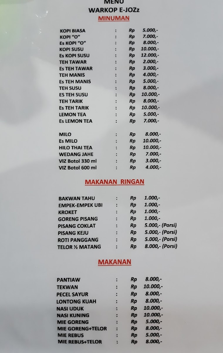 The experience here is not purely about the food—it's about relaxation, conversation, and enjoying the serene environment. Warkop E-JOZz is perfect for coffee lovers seeking a peaceful retreat, making it a must-visit spot in the heart of the city.